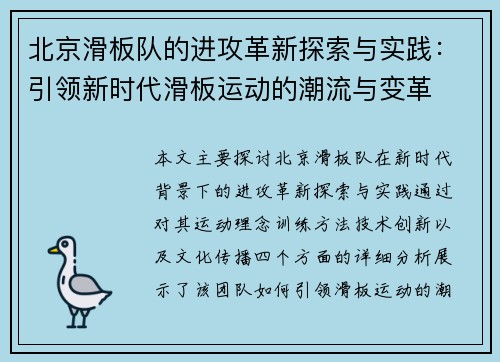 在城市马拉松的热潮中,成都滑板队以其独特的方式追逐梦想与荣耀。他们不仅是一支代表性的运动团队,更是年轻人勇敢追求梦想的象征。在这篇特别报道中,我们将从四个方面探讨成都滑板队如何在赛道上不断挑战自我、超越极限,展现出团结拼搏的精神。通过对他们训练日常、比赛经历、团队文化以及未来愿景的细致描绘,我们将更...