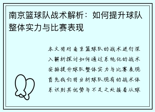 本文旨在探讨南京街舞队在比赛中的经验分享与技巧的深入分析,以助力街舞文化的发展。首先,文章将从街舞比赛的重要性入手,阐述参与比赛对舞者技能提升和团队合作的促进作用;接着,将讨论南京街舞队在比赛中所积累的实用技巧,包括编排、训练和心理素质等方面;然后,文章将分析如何通过这些经验推动当地街舞文化的发展,...